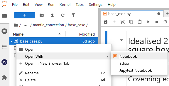directories, right click on the .py file and select Open With -> Notebook